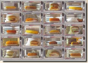 FEBO is a chain of Dutch walk-up fast food restaurants of the automatiek type. Founded in 1941 in Amsterdam, FEBO is most notable for this automatiek format: a counter is available for purchasing French fries, beverages, and hamburgers. Other FEBO snacks can be bought from the automats. The primary automat-vended items are krokets, frikandellen, hamburgers, "cheese soufflés" and such. The FEBO motto "De Lekkerste" (Dutch) is translated as "The Tastiest". According to the company website, FEBO has almost 60 shops all over the Netherlands, with 54 being franchises. There are 22 shops in Amsterdam alone. Originally a bakery named "Maison FEBO" after Ferdinand Bolstraat in Amsterdam, where the founder was an apprentice baker, the name was later shortened to just "FEBO".